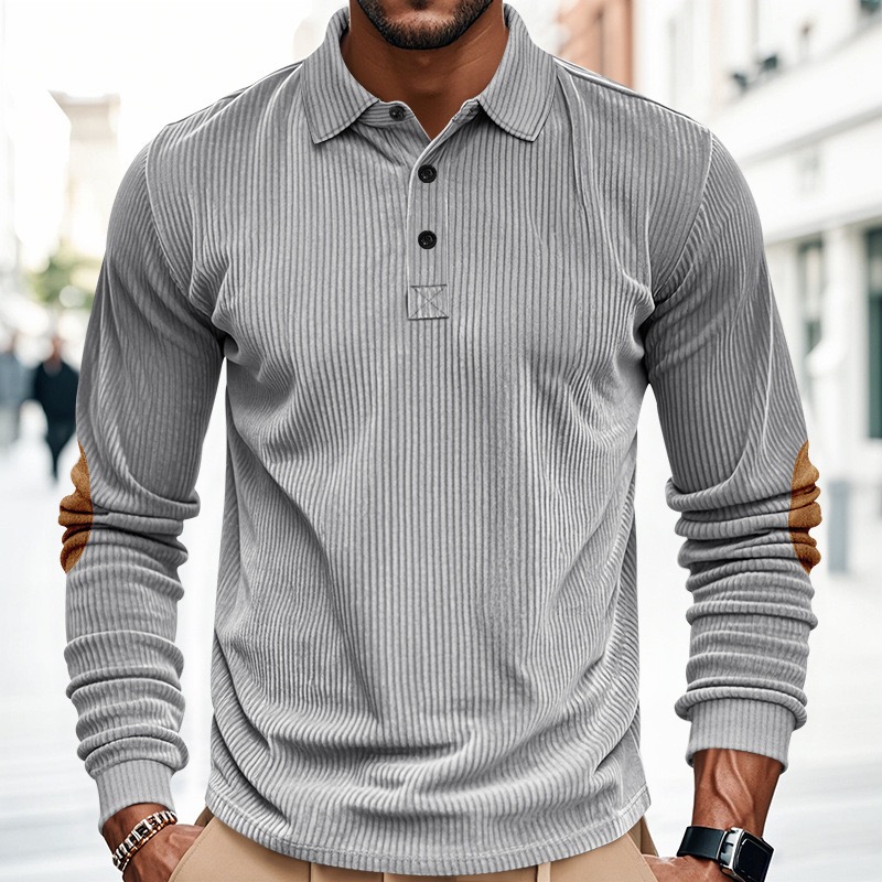 Einfaches Cordhemd mit kariertem Revers und Knöpfen, lässiges Langarm-Poloshirt