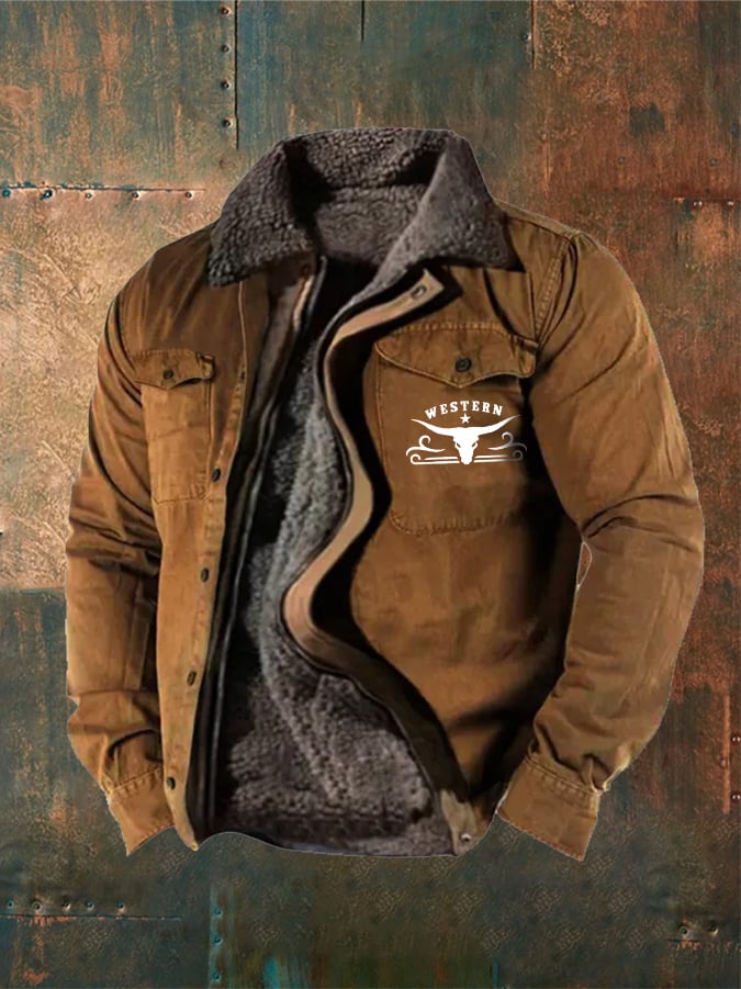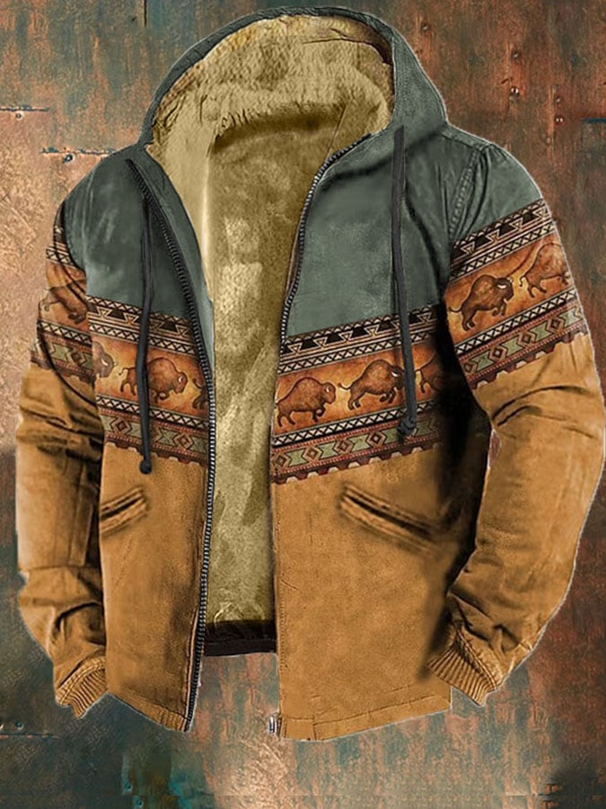 Men'S Retro Western Print Cotton Zipper Outerwear