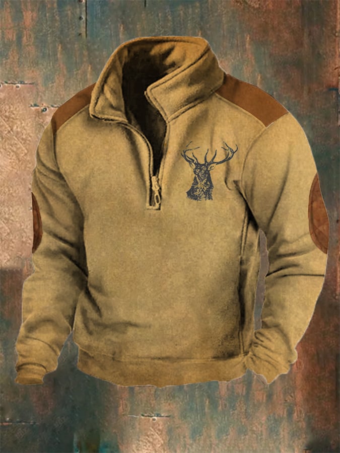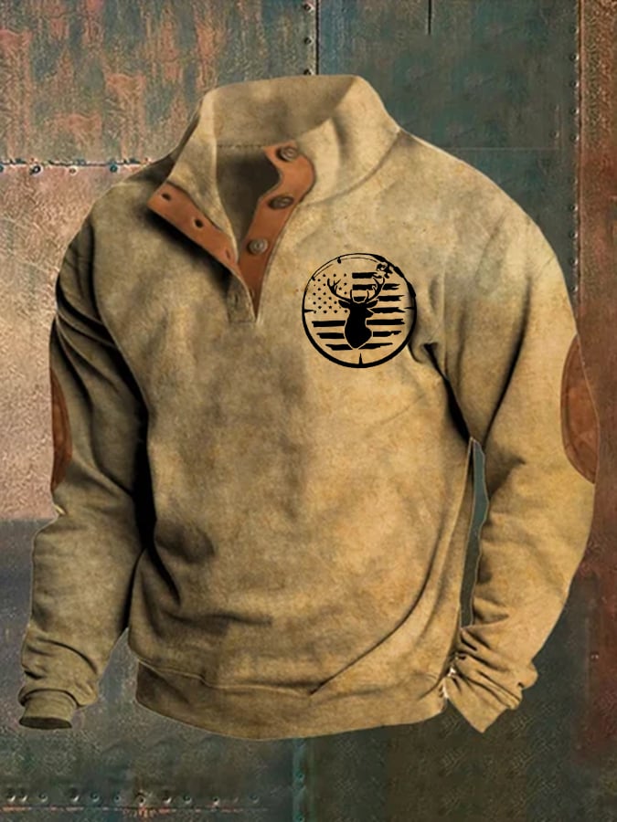 Men'S Deer Flag Printed Buttons Casual Sweatshirt