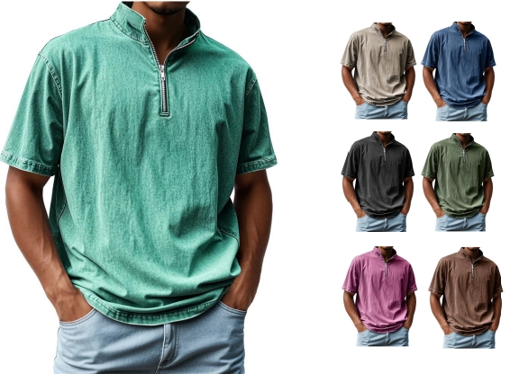Half - zip shirt. crafted from soft. breathable material to keep you looking stylish and relaxed. Showcase your confidence with this chic piece. Elegant half - zip stand - collar design. subtle vertical texture. and a comfortable touch. An excellent wearing experience that wins the favor of every fashion - forward individual.