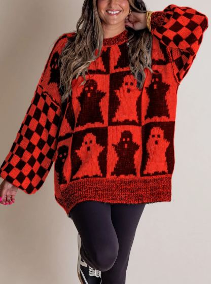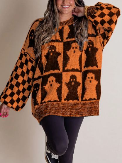 A whimsical fusion of classic charm and Halloween spirit, cozy meets festive charm. This sweater is not just a garment but a celebration of the autumnal season, perfect for chilly evenings by the bonfire or casual outings during the Halloween festivities.