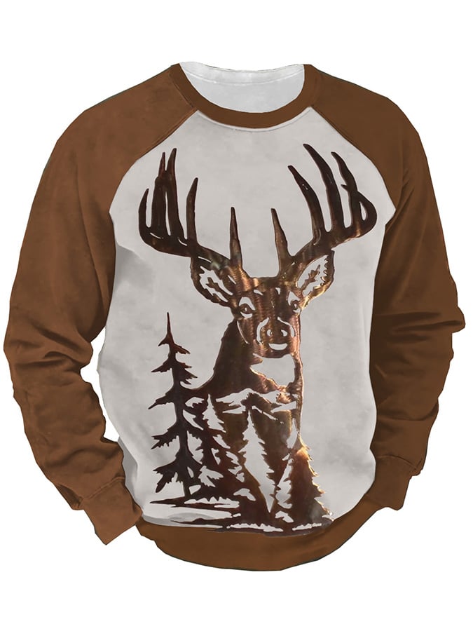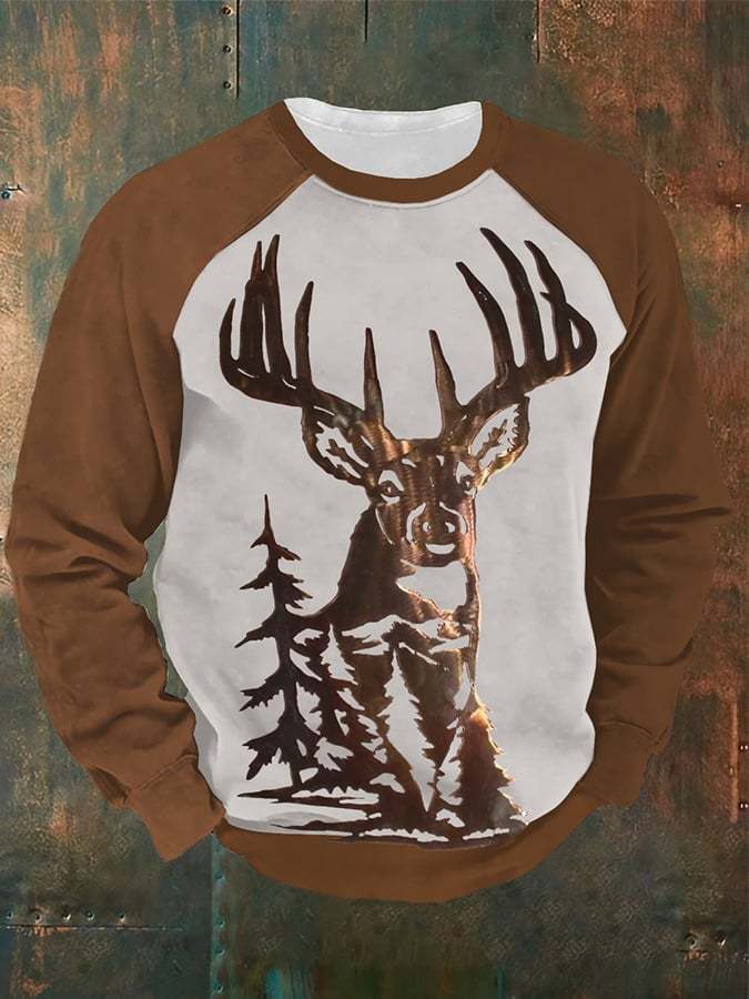 Men's Western Elk Print Raglan Crew Neck Sweatshirt