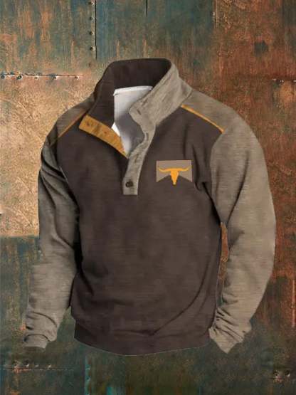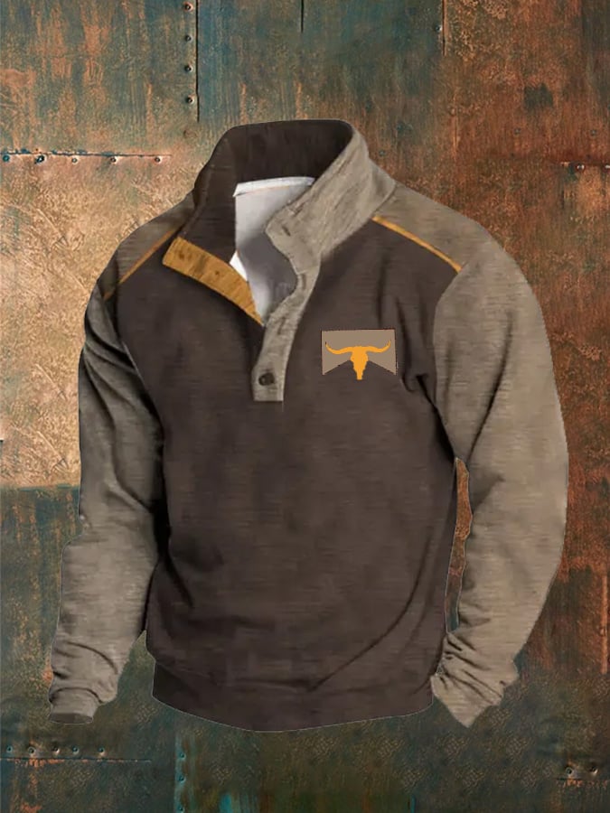 Men'S Western Printed Button Casual Sweatshirt