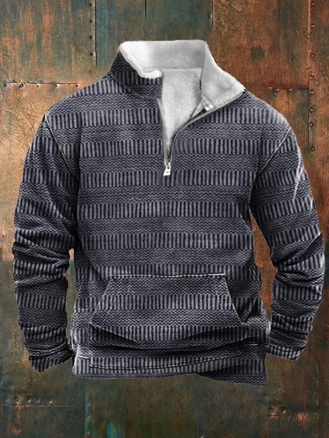 Men's Vintage Fleece Knitted Jacquard Zipper Jacket