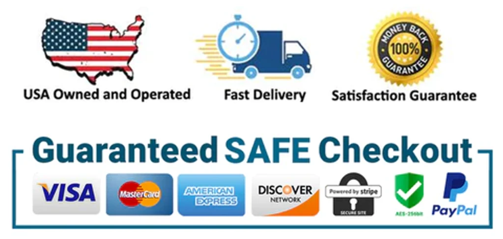 The Checkout Process is Guaranteed to be 100% Safe and Secure with Visa. Mastercard. AMex. Discover. Apple Pay or PayPal.