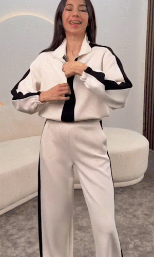 Package Includes: 1 * Women’s Zipper Lapel Tops & Pants 2-Piece Set