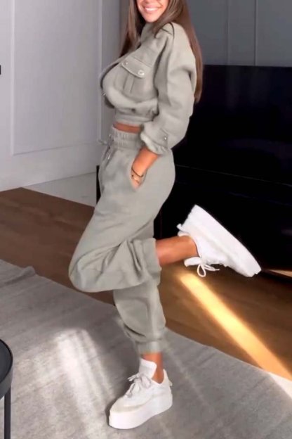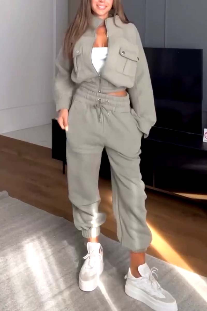 Women's Casual Multi-Pocket Stand Collar Sports Suit